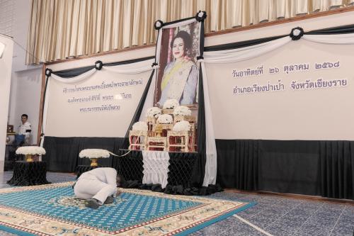 สำนักงานพัฒนาชุมชนอำเภอเวียงป่าเป้า นำโดย นางสาวทัศนาภรณ์ จันทร์ดง พัฒนาการอำเภอเวียงป่าเป้า พร้อมด้วยเจ้าหน้าที่พัฒนาชุมชน ร่วมพิธีถวายน้ำสรงพระบรมศพเบื้องหน้าพระฉายาลักษณ์ สมเด็จพระนางเจ้าสิริกิติ์ พระบรมราชินีนาถ พระบรมราชชนนีพันปีหลวง เพื่อแสดงออกถึงความอาลัยและสำนึกในพระมหากรุณาธิคุณอันหาที่สุดมิได้ ที่ทรงอุทิศพระวรกายและพระสติปัญญา เพื่อบำบัดทุกข์บำรุงสุขแก่พสกนิกรชาวไทยมาโดยตลอดพระชนม์ชีพ