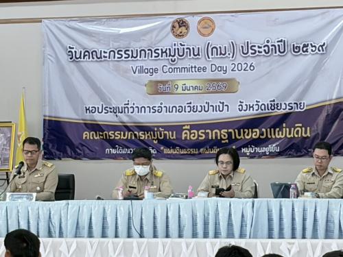🌟 นางสาวทัศนาภรณ์ จันทร์ดง พัฒนาการอำเภอเวียงป่าเป้า เข้าร่วมการประชุมกำนัน ผู้ใหญ่บ้าน ประจำเดือนมีนาคม 2569 ณ หอประชุมที่ว่าการอำเภอเวียงป่าเป้า เพื่อชี้แจงข้อราชการและแนวทางการดำเนินงานตามภารกิจของสำนักงานพัฒนาชุมชนอำเภอเวียงป่าเป้า โดยมีสาระสำคัญ ได้แก่ การประชาสัมพันธ์เชิญชวนร่วมทำบุญสมทบ กองทุนพัฒนาเด็กชนบทในพระราชูปถัมภ์ สมเด็จพระกนิษฐาธิราชเจ้า กรมสมเด็จพระเทพรัตนราชสุดาฯ สยามบรมราชกุมารี เพื่อเป็นกองทุนในการช่วยเหลือ สนับสนุน และพัฒนาเด็กยากจนในชนบท ให้ได้รับการพัฒนาทั้งด้านร่างกาย จิตใจ อารมณ์ สังคม และสติปัญญาอย่างเหมาะสมตามวัย พร้อมทั้งได้เน้นย้ำการสนับสนุนการจัดทำและขับเคลื่อน แผนพัฒนาตำบล ให้เป็นไปอย่างมีส่วนร่วมของทุกภาคส่วนในพื้นที่